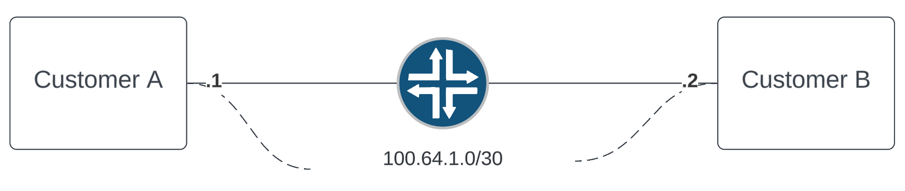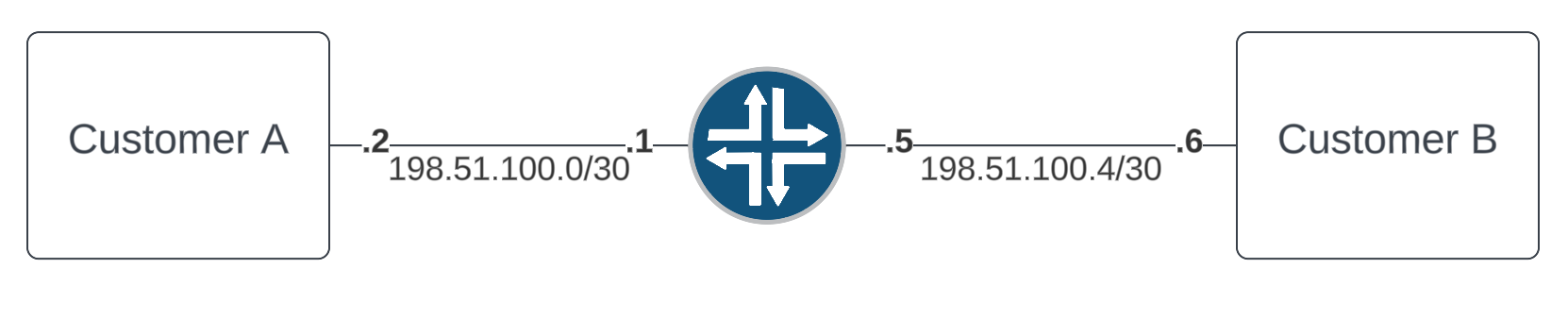 In this real life scenario, we have many routers between Customer A and Customer B. Each router has many customers and lots of traffic on all ports. For simplicity sakes, I am only drawing one below. However, the steps wouldn't change, they would just be done for each router.Problem report: Customer A reports they cannot access Customer B resources while on your network.