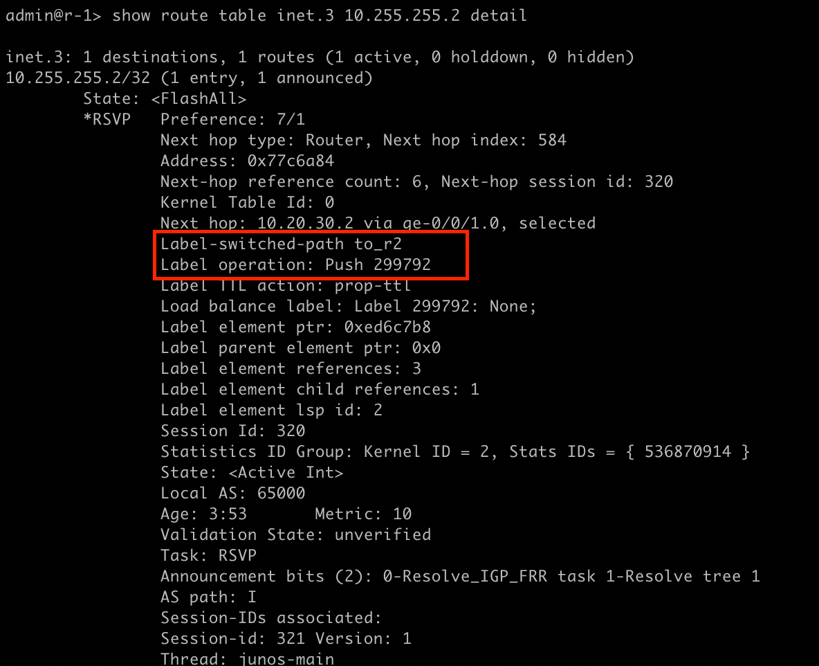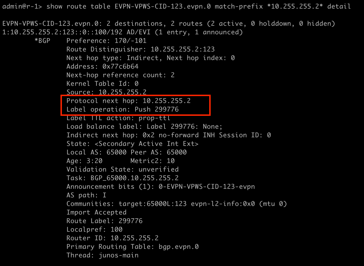 In order to trace this packet on the core side, we need to know what MPLS labels we are looking for. Lets take a look at the EVPN and LSPs.