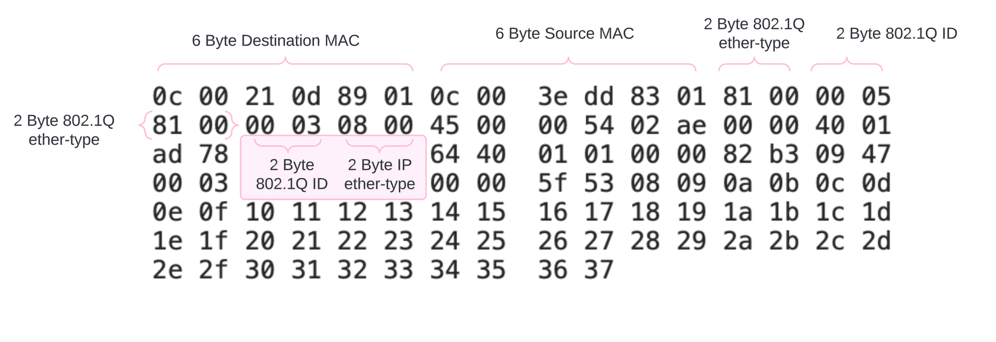 So we've learned that this device is expecting 2x 0x8100 tags. If we kept going, we would learn the SRC and DST IP as well. These are useful and actionable pieces of evidence that may help you resolve your connectivity issues.